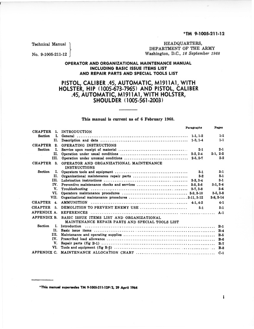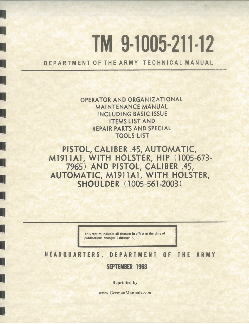 ordnance maintenance manual for the Model 1911 .45 pistol, and the Colt